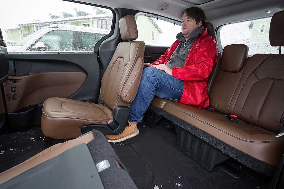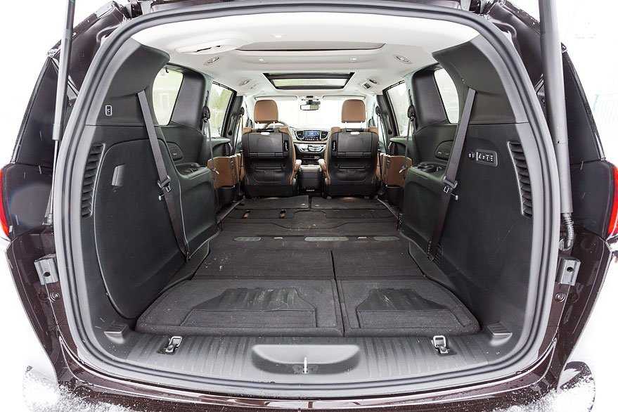 Трансформация салона Pacifica – это еще одна вещь, за которую создателям машины хочется аплодировать стоя. Никаких мучений с неудобными ручками и заклинившими спинками кресел – два ряда сидений складываются за несколько секунд без каких-либо физических усилий. Все электрифицировано и феноменально просто. Но главное – сложив сиденья, можно получить абсолютно ровный пол. В таком виде «Пацифика» готова поспорить с иным грузовым фургоном в вопросах вместительности – хоть холодильник перевози. Размер багажного отделения можно менять за несколько секунд в зависимости от ситуации и количества пассажиров, с тремя рядами кресел багажник тоже есть и приличный – паре больших сумок места точно хватит.